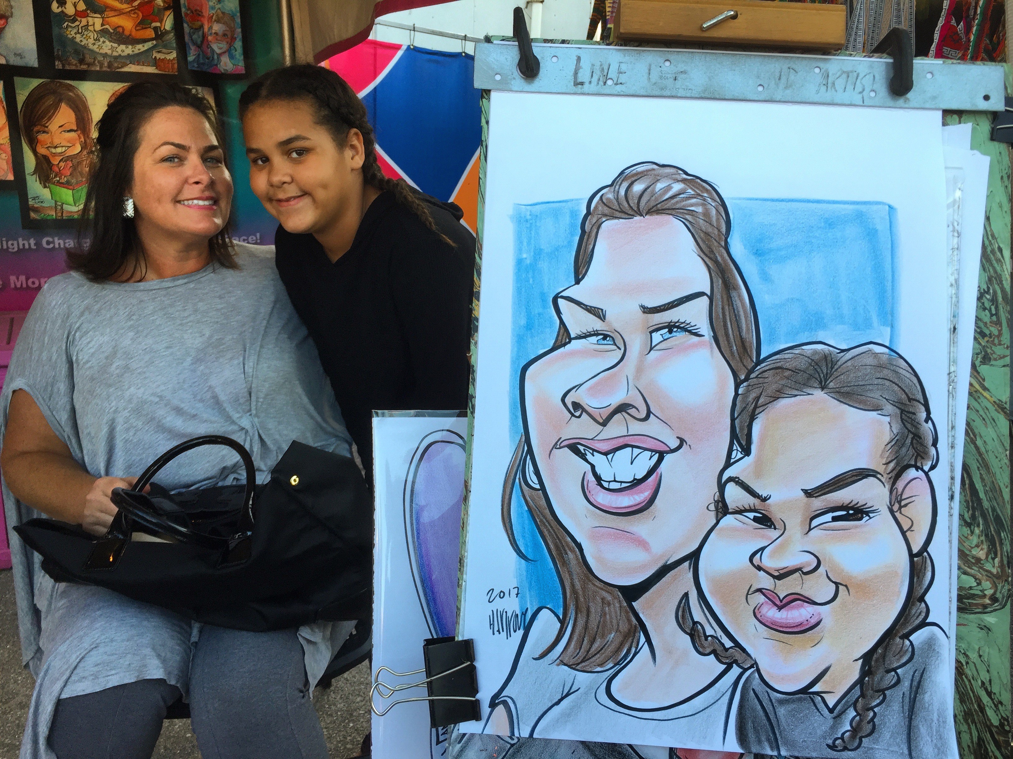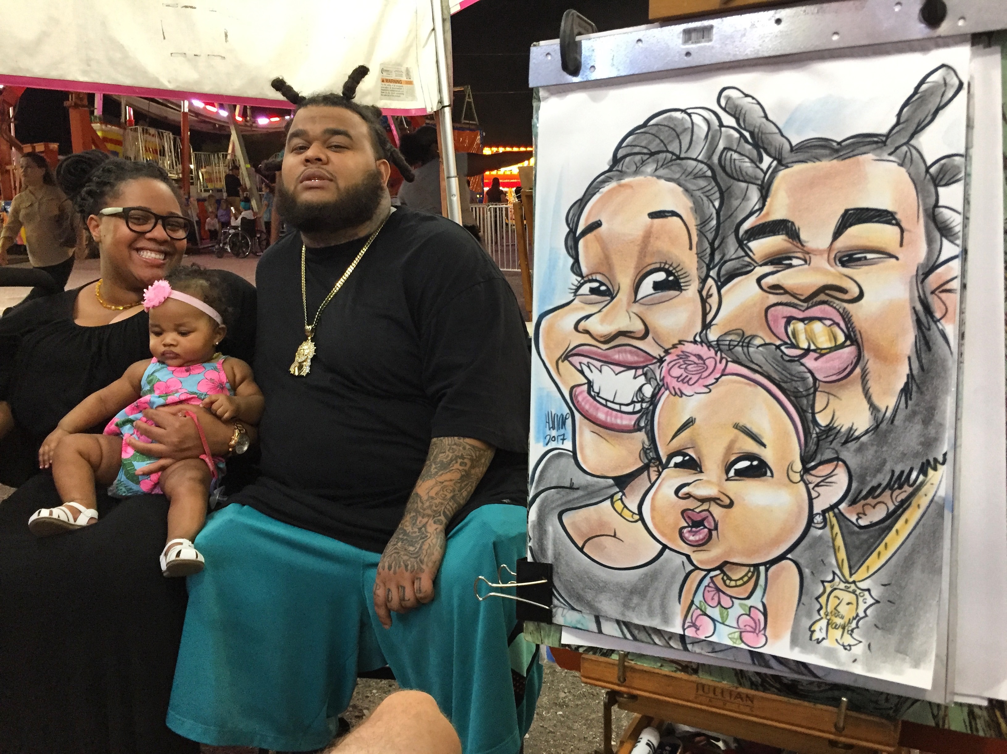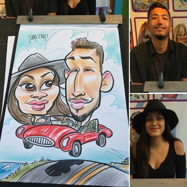 I started drawing caricatures professionally in 2013 on the boardwalks of the Jersey Shore and continued working at State and County Fairs from Florida to New York. In 2016 I moved on to California working at the Santa Cruz beach boardwalk. Located close to Silicon Valley I frequently drew at corporate events for companies like Apple and Google. Eventually moving down to LA to learn airbrush caricatures at Universal Studios Hollywood.